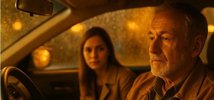 Det regnade kraftigt den kvällen, en sådan storm som gjorde att varje gatlykta förvandlades till gula halos. Emma drog sin kappa tätare om sig när hon vinkade in
