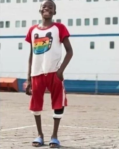 En leende och utåtriktad pojke, Ulrich, föddes i Afrika med ett allvarligt, sällsynt tillstånd – quadricepskontraktur. Detta fick hans ben att böjas bakåt och hans knän att inte kunna rätas ut.