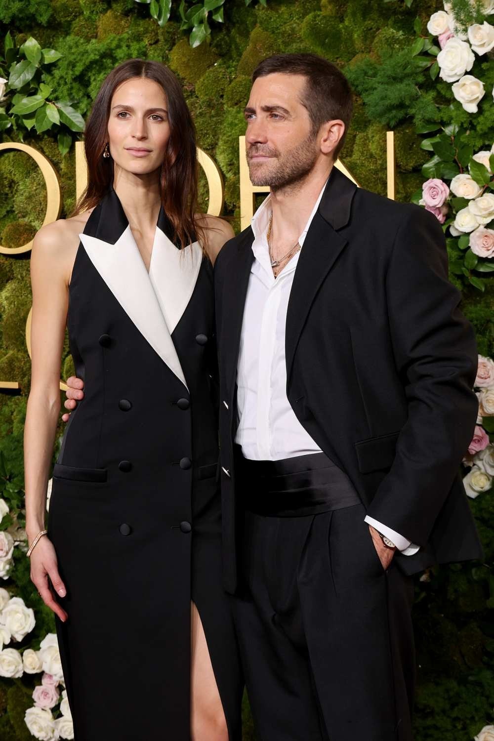 Gyllenhaal valde en skarp svart kostym med satindetaljer och lämnade sin vita skjorta något öppen vid kragen. Kedjor vilade synligt vid hans hals, vilket gav en avslappnad touch till en annars formell look. Vid några ögonblick lindade han en arm runt Cadieus midja och drog henne nära sig medan blixtarna avlossade runt dem.