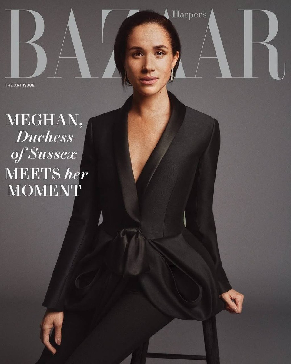 Omslaget har en minimalistisk stil: Meghan poserar i en Dior-jacka över sin bara hud och raka byxor. Hennes hår är bakåtsittande i en lös, avsiktligt avslappnad uppsättning, och hennes enda accessoar är ett par örhängen från Tiffany & Co.. På ett annat foto sitter hertiginnan redan i en stol, iklädd en elegant enaxlad Ferragamo-klänning – en mjukare, mer avslappnad look.