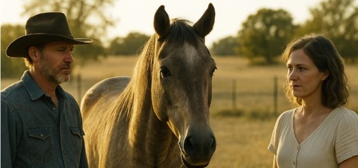 Solen höll på att gå ner och spred ett varmt, bärnstensfärgat ljus över fälten.Luften doftade av torrt hö och kvällens svalka.Den gamla hästen Daisy stod vid staketet på