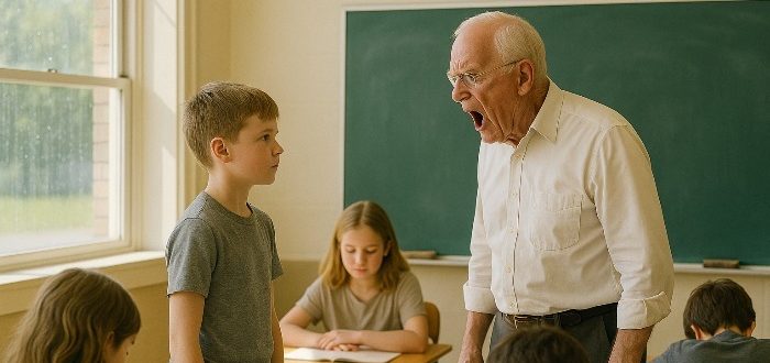 Kritan skar mot tavlan med ett obehagligt ljud.Luften i klassrummet var tung — lukt av våta jackor, bläck och rädsla.Herr Hale skrek igen. Hans röst ekade mellan väggarna,