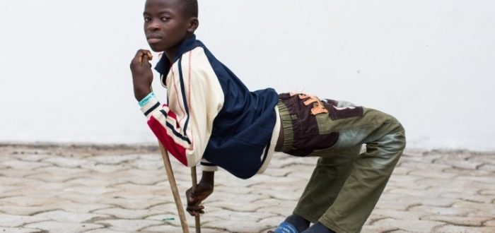 En leende och utåtriktad pojke, Ulrich, föddes i Afrika med ett allvarligt, sällsynt tillstånd – quadricepskontraktur. Detta fick hans ben att böjas bakåt och hans knän att inte