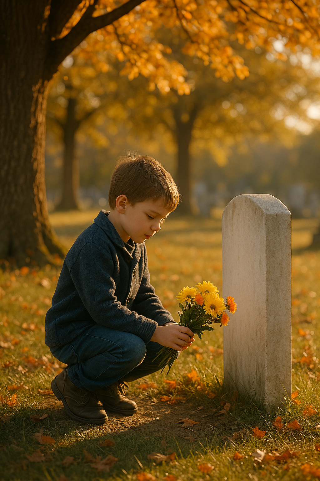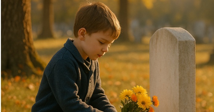 Varje söndagsmorgon, oavsett väder, såg folk på stadens kyrkogård samma sak. En liten pojke, högst åtta år gammal, gick tyst längs grusgången med en handfull färska blommor i handen. Han var inte med sina föräldrar. Han var inte med vänner. Han kom alltid ensam.