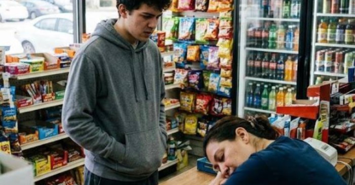 Er bewegte sich langsam durch den Laden, ließ seinen Blick über die Regale schweifen, offenbar auf der Suche nach etwas zu trinken. Doch plötzlich blieb er stehen. Hinter der Theke bot sich ihm ein ungewöhnliches Bild: Die Verkäuferin war eingeschlafen, den Kopf auf die Arme gestützt. Die Kasse stand offen, Bargeld lag sichtbar daneben – und weit und breit war keine weitere Person zu sehen. Nur das leise Brummen der Kühlschränke und die gedämpften Geräusche von draußen durchbrachen die Stille.