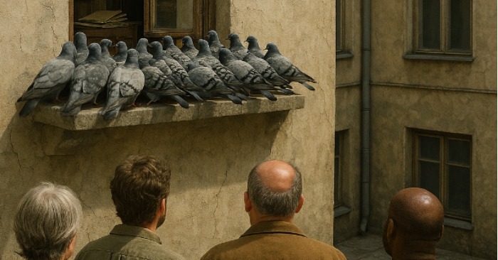 Varje morgon märkte de boende samma sak: en flock duvor samlades vid samma fönster på tredje våningen. Fåglarna satte sig på fönsterbrädan, hoppade omkring och verkade vänta på något. Även när folk försökte jaga bort dem kom de tillbaka om och om igen. Folk skrattade och sa att de hade hittat en ”duvmatningsplats”. Men dag efter dag upprepade sig scenen och spänningen ökade.