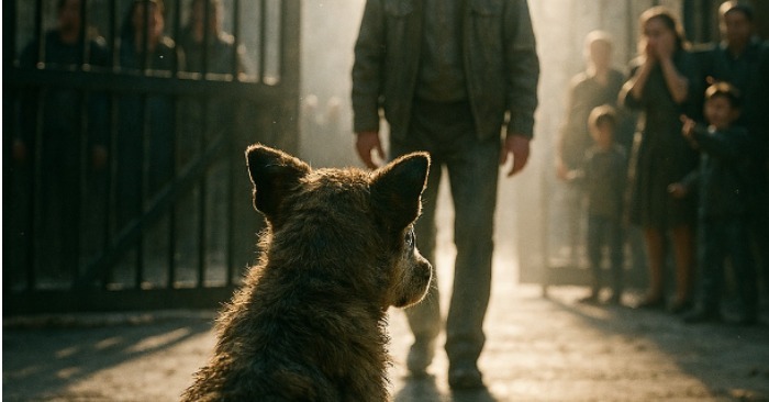 Mannen stelnade till och föll sedan på knä. Hunden hoppade på honom, välte honom och täckte hans ansikte med våta kyssar. Han kramade henne med båda armarna och brast ut i gråt, och höll henne tätt intill sig som om han var rädd att förlora henne igen.