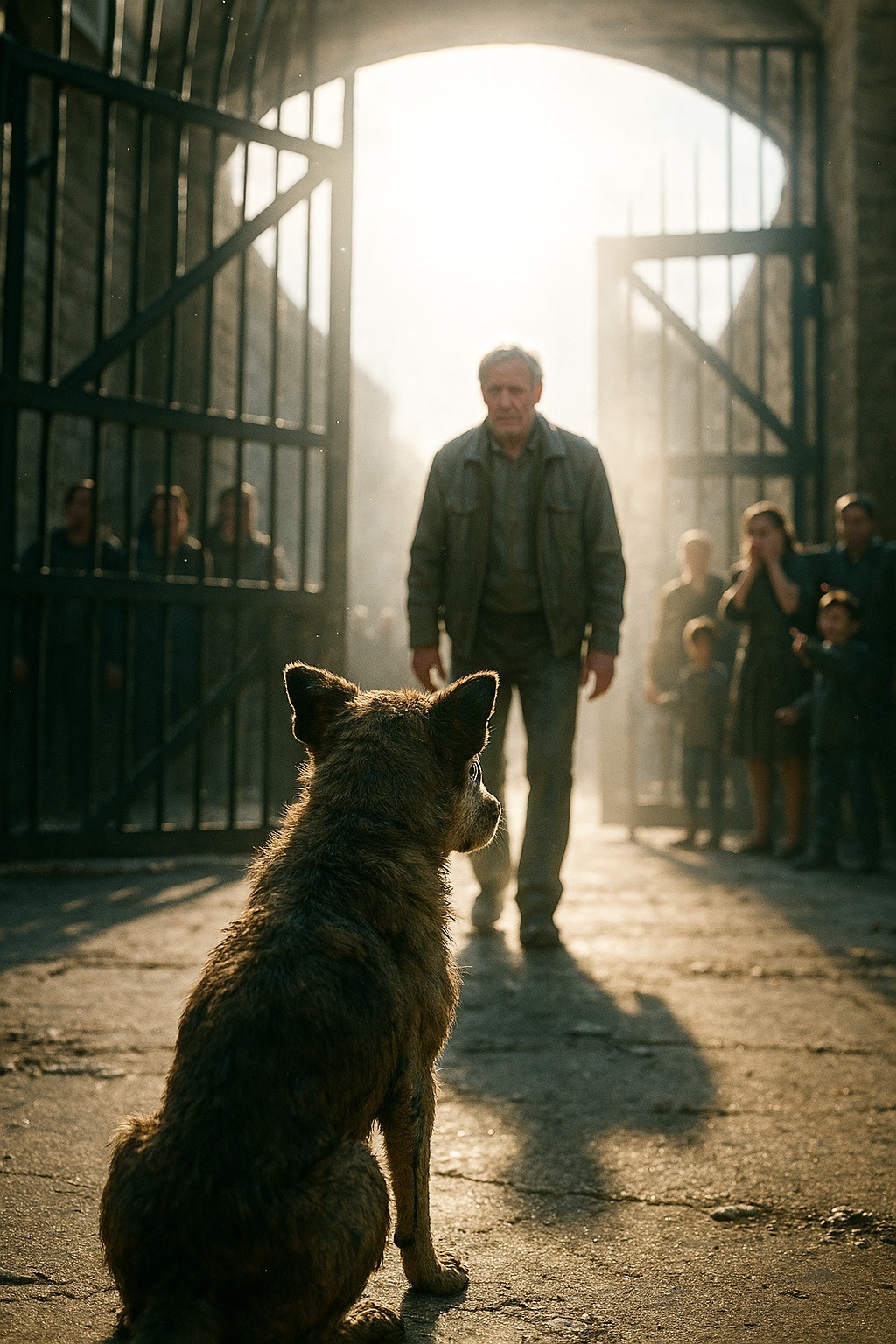 Folk på gatan stannade till. Till och med bilarna stannade och tutade otåligt. En man i en sliten jacka, med trötta ögon och gråa tinningar, kom ut genom portarna. Han såg sig omkring, som om han inte kunde tro att detta verkligen hände.
