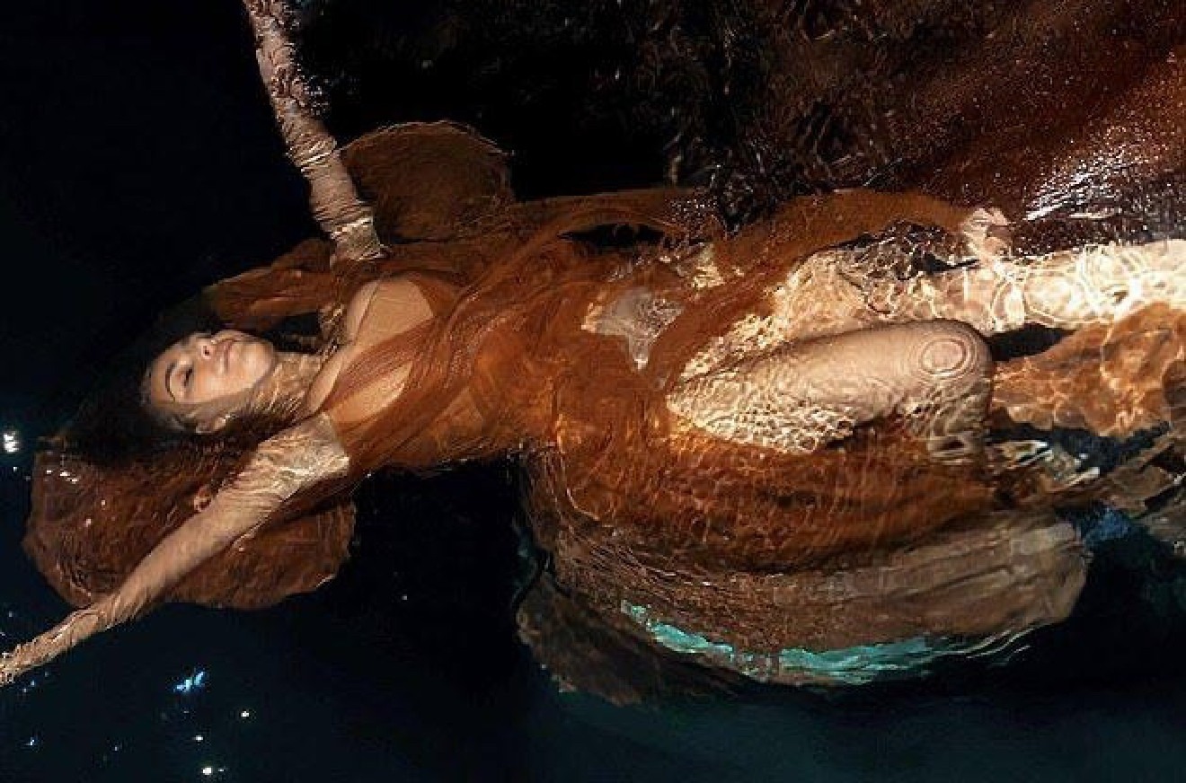 Inför fotograferingen slickade Kim håret bakåt, applicerade mycket lätt smink och sänkte sig helt ner i vattnet, vilket resulterade i filmiska vinklar. I en av de mest slående bilderna står hon mitt bland vågorna och tittar rakt in i kameran.