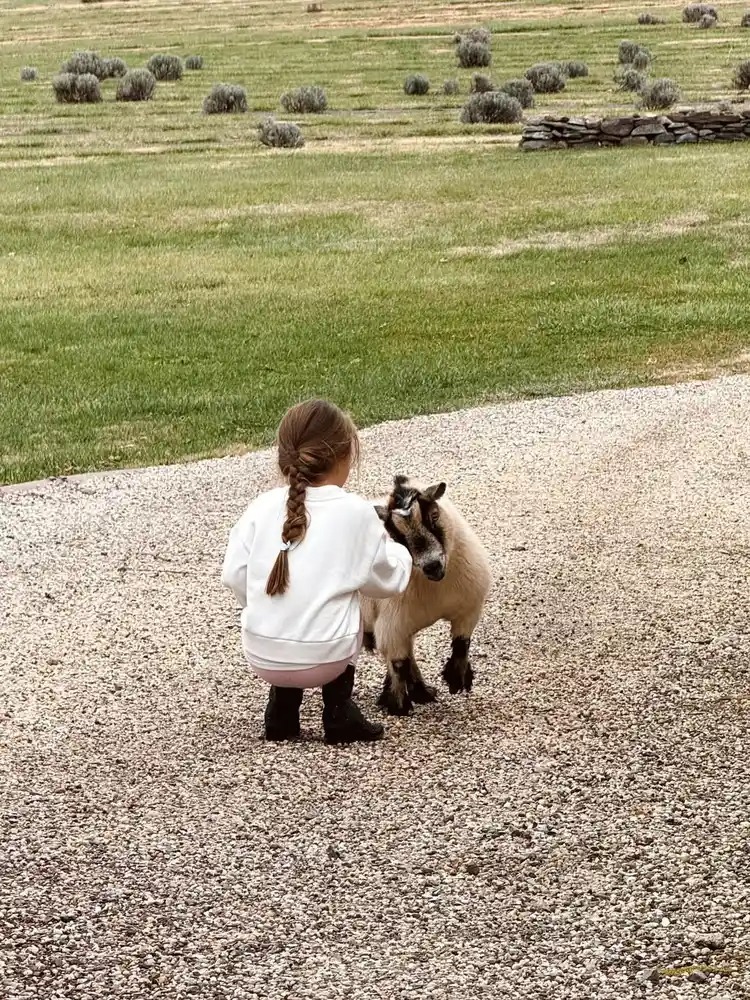 Femåriga Khai har märkbart vuxit upp: på en bild syns hon på en gård när hon klappar en getunge. Flickan är klädd i en vit tröja, rosa leggings och cowboystövlar – en look som betonar den västerländska stilen som ofta dyker upp i Gigis fotograferingar. Khais långa bruna hår är prydligt flätat. Enligt traditionen döljer mamman sitt barns ansikte och fotograferar henne bakifrån eller medan hon rör sig.