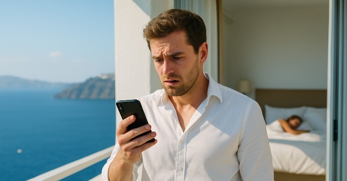 På deras andra natt, efter en lång middag med utsikt över havet, kröp de ihop i sängen, fortfarande skrattande. Rachel bläddrade igenom sin telefon innan hon slutligen lade den på nattduksbordet och somnade bredvid honom.