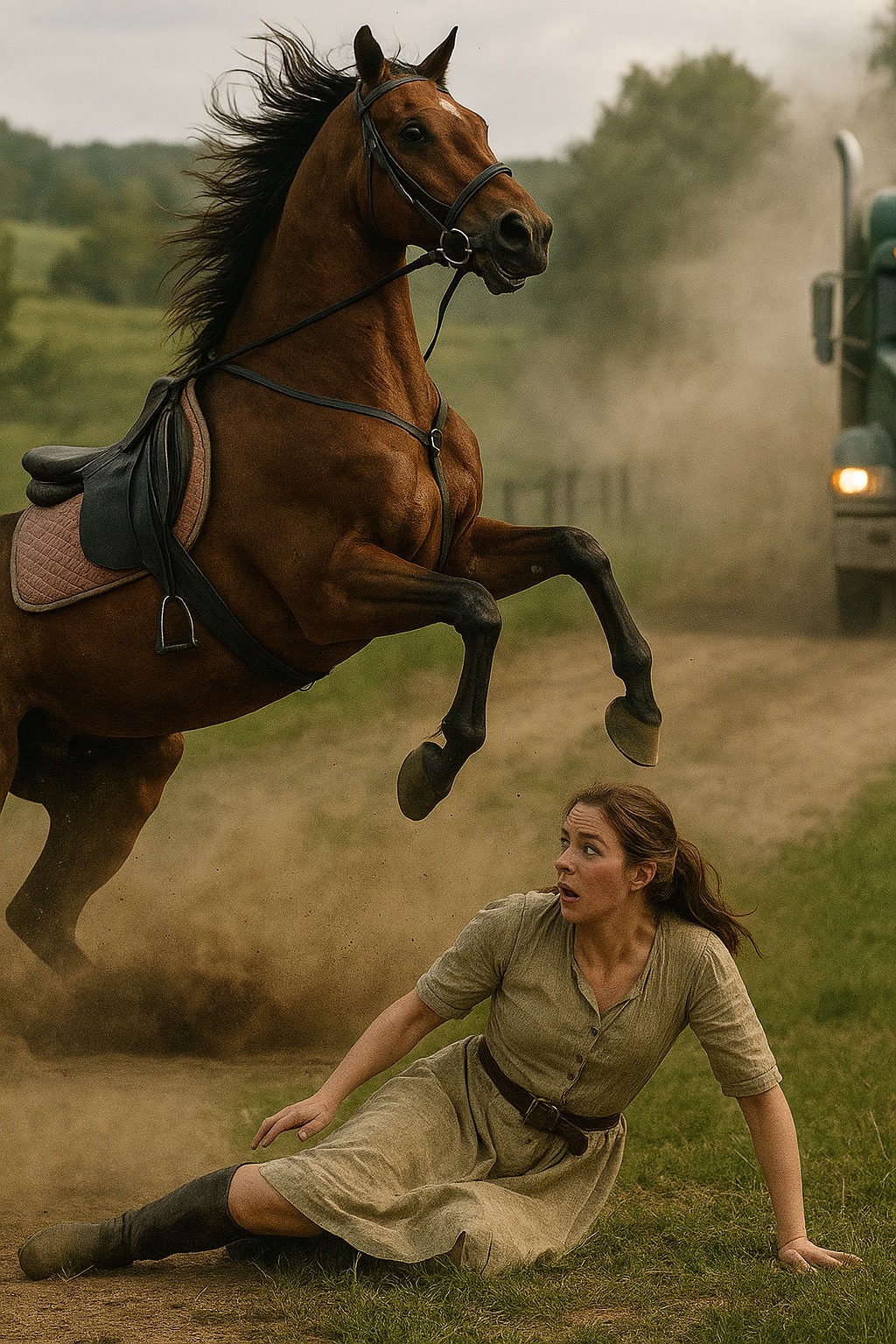 Tystnaden följde, endast avbruten av lastbilens motorljud. Annas hjärta bultade när hon insåg sanningen: om Starfire inte hade kastat av henne, hade hon hamnat direkt i dess väg. Hästen hade känt faran långt innan hon kunde se eller höra den.