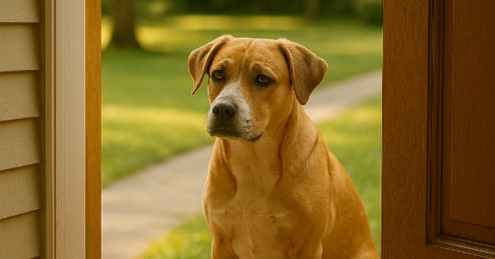 Buddy, som vanligtvis var den mest lekfulla, svansviftande hunden i världen, stannade tvärt vid tröskeln. Hans öron gick bakåt och hans kropp blev stel. Hannah drog försiktigt i hans koppel. ”Kom igen, pojken!” lockade hon.