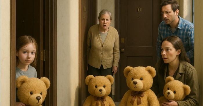 Nyheten spred sig omedelbart i hela huset. Grannarna började kolla sina nallebjörnar – och alla hade samma kvitton inuti. Det blev en otrolig uppståndelse: vissa skrek att det var ett skämt, andra skrattade och andra viskade om mystik och sa att huset själv påminde dem om deras skulder. De bestämde sig för att kalla till ett möte för att reda ut situationen.
