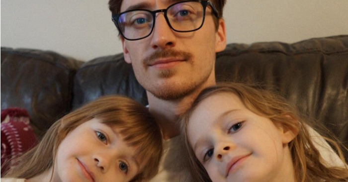 Han flyttade in två veckor efter begravningen. Han packade smörgåsar. Han flätade deras hår. Han sjöng vaggvisor som han hittade på internet.
