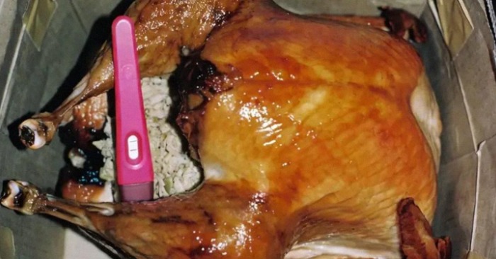 Bredvid kalkonen låg ett positivt graviditetstest. Och ett svart USB-minne. Ovanpå låg en omsorgsfullt vikt lapp.