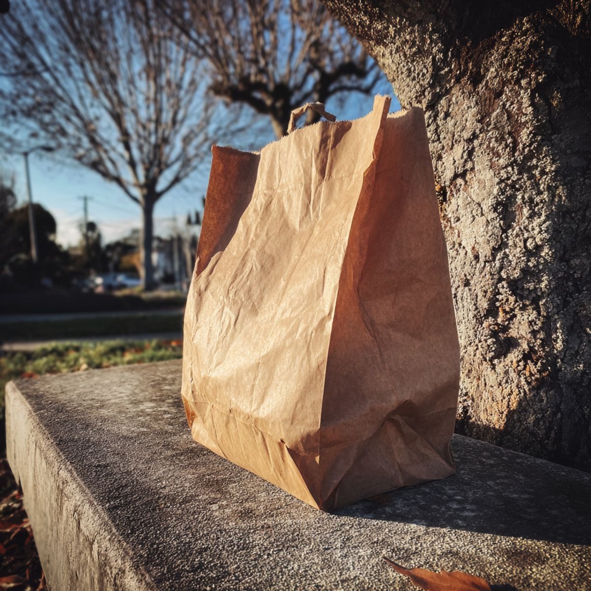 Hon satt ensam under ett bart lönnträd, inte långt från kundvagnarna. Hennes händer darrade i knät och hon hade ingen jacka på sig. Hennes ögon var fixerade i marken, som om hon ville att betongen skulle svälja henne.