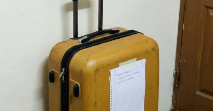 Två resväskor. Mina. Placerade prydligt bredvid varandra.