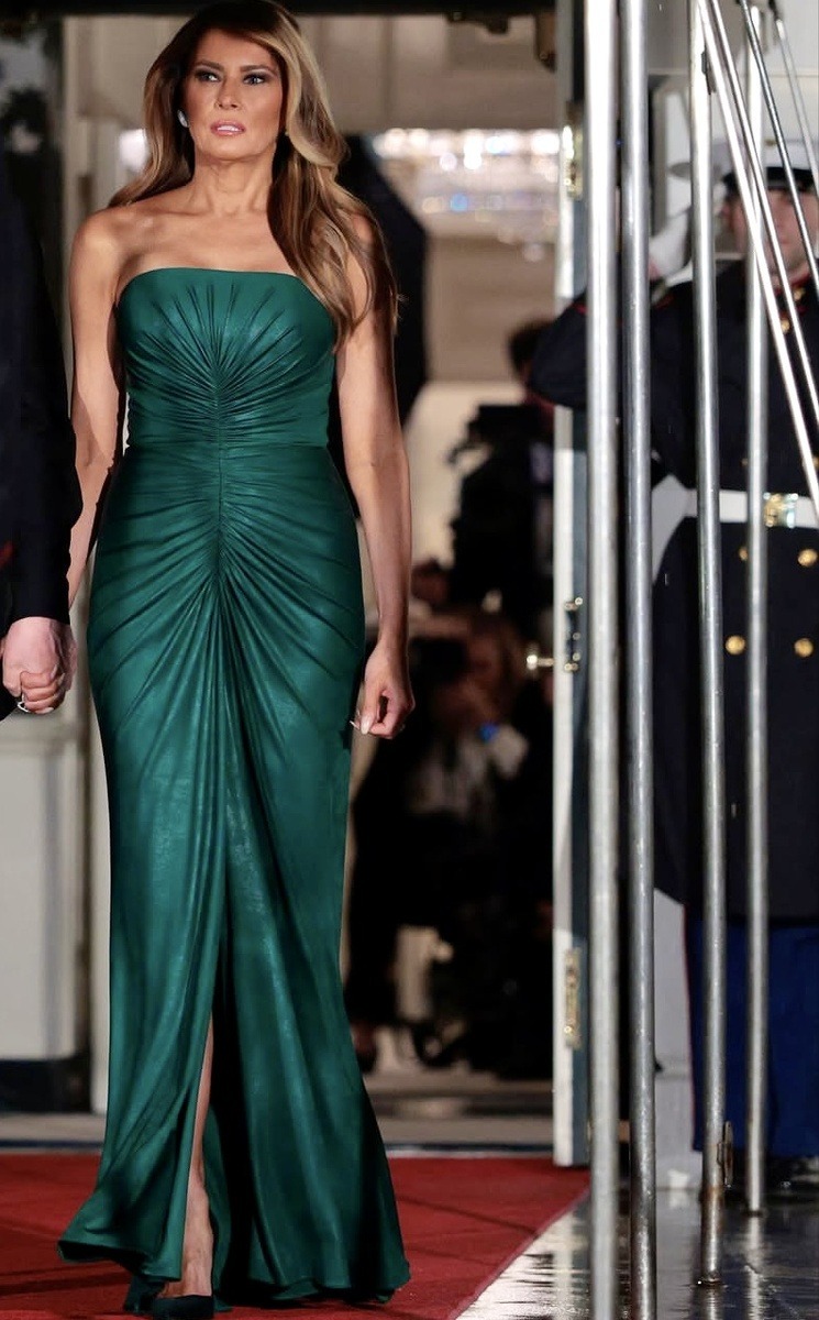Melania Trump har återigen hamnat i centrum för uppmärksamheten bland globala modeanalytiker och presenterat en look som redan kallas en förebådare för 2026 års trender. Vid en diplomatisk mottagning i Vita huset valde den amerikanska första damen en djup smaragdfärgad klänning – en färg som många experter har utsett till en ”framtida favorit”.