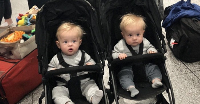 Känner du till det där ögonblicket när du känner att din partner är på väg att göra något fullständigt galet, men din hjärna låter dig inte tro det? Det var precis så jag kände mig. Jag stod vid gaten till Terminal C, våtservetter stack ut ur min väska, en av mina tvillingar var fastspända på bröstet och den andra tuggade på mina solglasögon.