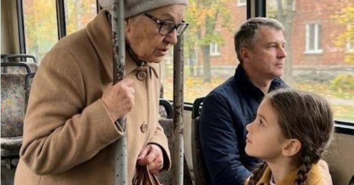 Vid en busshållplats öppnades dörrarna med svårighet, och en äldre kvinna steg långsamt ombord. Hon var ungefär sjuttio år gammal. Hon bar en ljus kappa, en prydlig basker och glasögon med fina bågar. Hon bar en liten väska. Det var tydligt att hon hade svårt att stå: hon rörde sig försiktigt bland passagerarna och höll sig stadigt i metallstången.