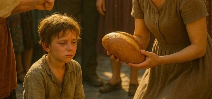 Pojken stod länge vid brödståndet på gatan. Den heta solen hängde över marknaden, luften var fylld av doften av nybakade bröd, och det gjorde att hans mage värkte