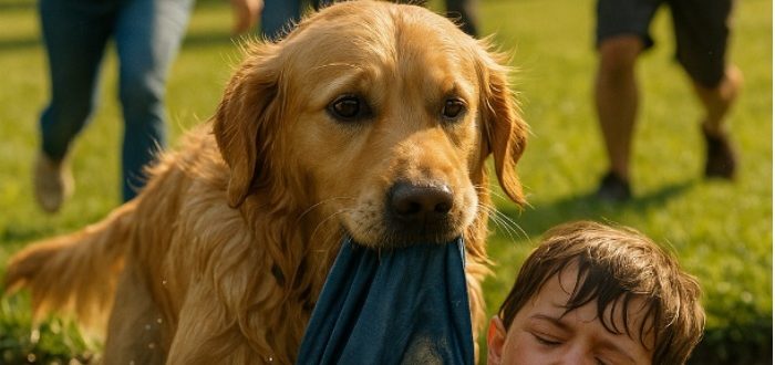 Det var en solig eftermiddag i parken. Familjer picknickade, barn lekte tafatt, skratt fyllde luften. Ingen märkte den lille pojken som närmade sig dammen. Ingen – utom hunden.
