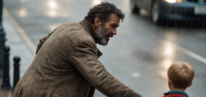 Det var en regnig kväll när min far öppnade dörren och såg en man stå på vår veranda. Han var genomblöt, jackan klibbade fast vid honom och vatten