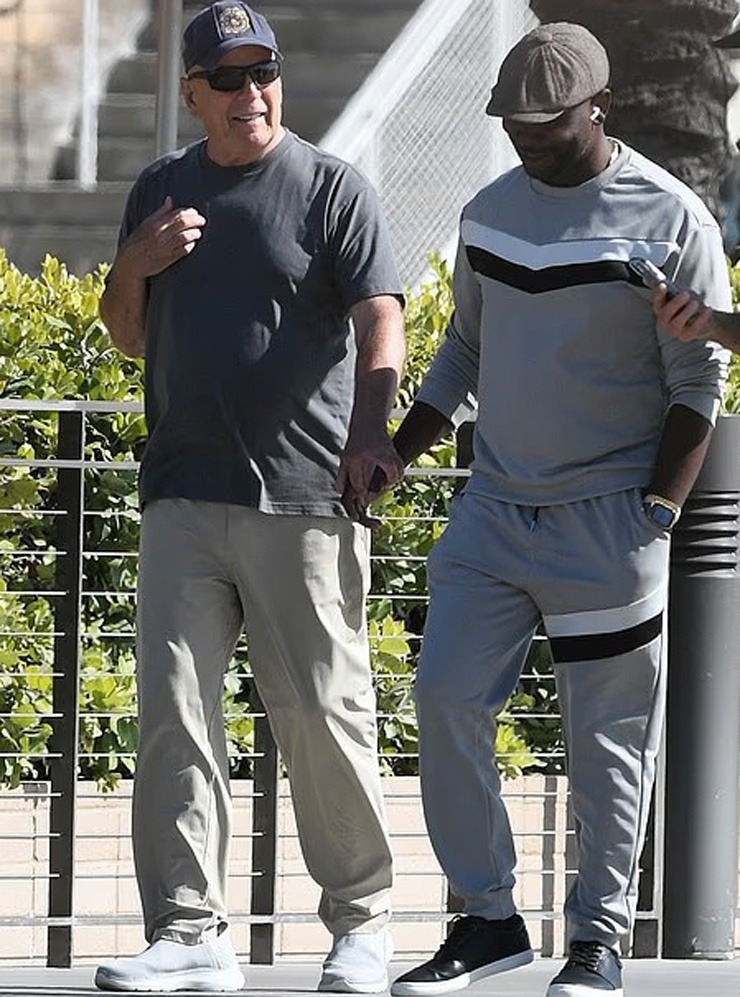 Under sin promenad i Los Angeles var Willis enkelt klädd: en t-shirt, mjukisbyxor, sneakers och en mörk basebollkeps. Men kläderna var inte det viktigaste. Skådespelaren gick långsamt, lutad mot en assistent, och vid ett tillfälle var han tvungen att ta tag i räcket för att inte falla. Det var tydligt att han kämpade med rörelserna, och hans steg blev alltmer ostadiga.